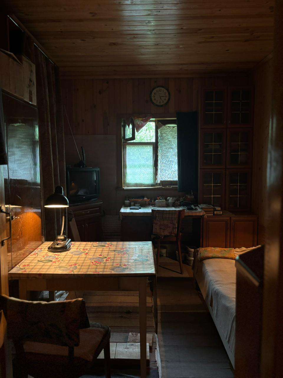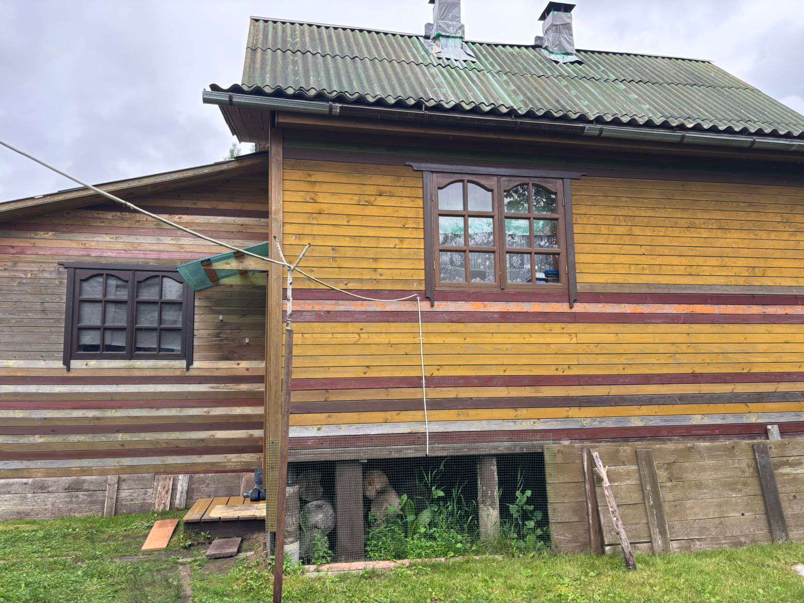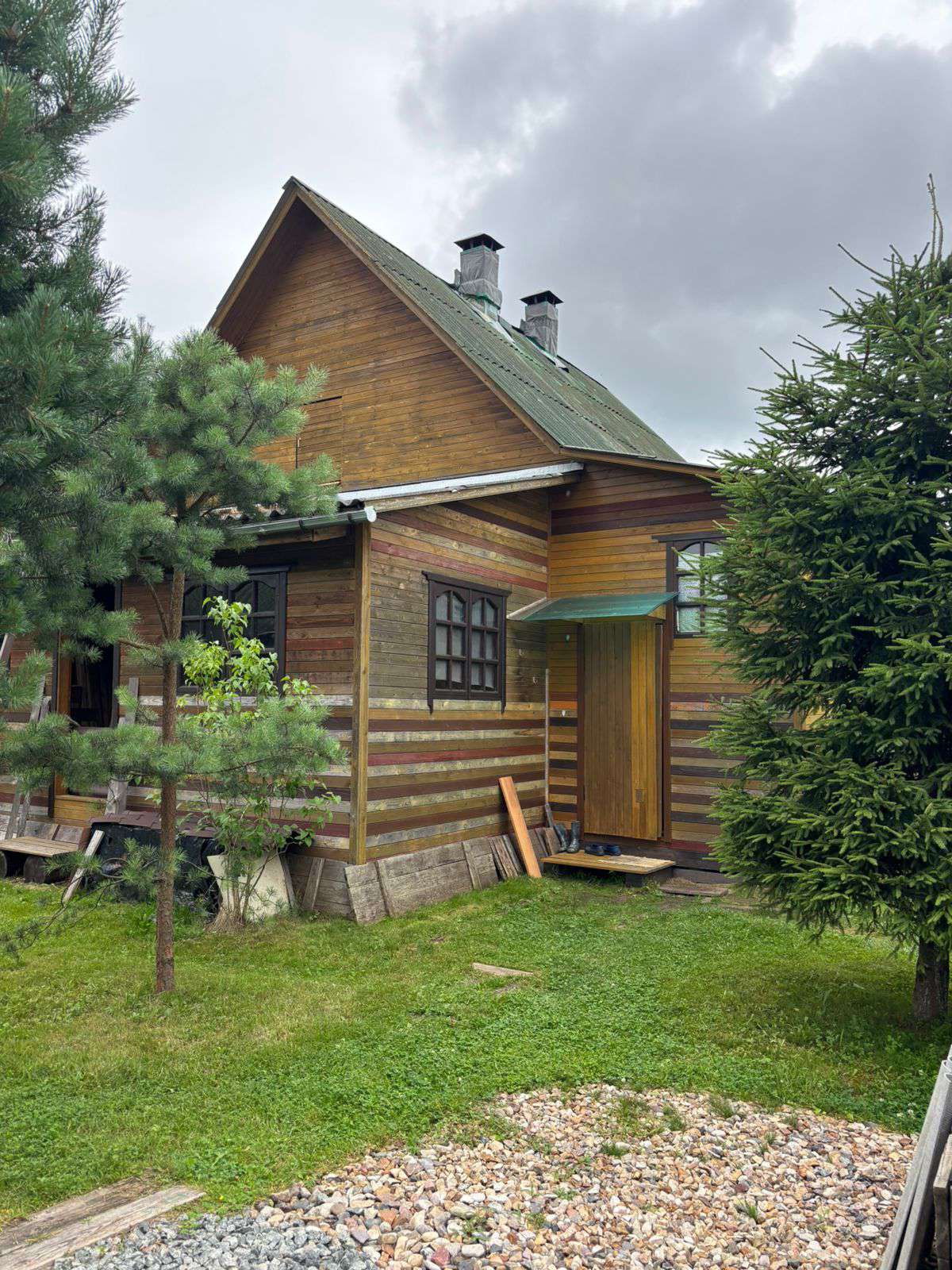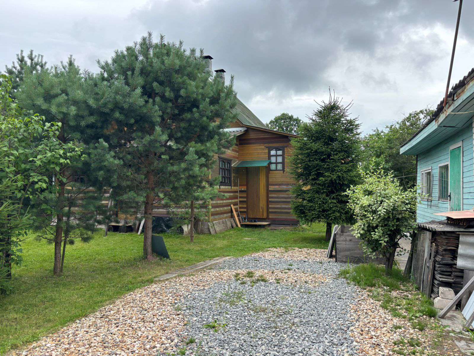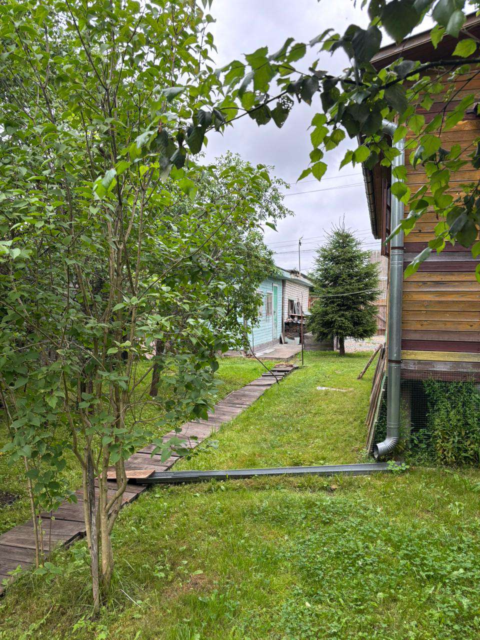 Отдельно стоящий бревенчатый дом на фундаменте в черте города. Крыша покрыта шифером, к дому пристроены две веранды, дом снаружи и внутри обшит вагонкой, проведено электричество, вода (колодец на участке), рядом колонка. В доме прихожая, кухня, три комнаты, окна деревянные косметический ремонт, две печки (новые кирпичные). На участке есть: кирпичный гараж — 7 метров, к нему пристроены две бытовки, два дровника, баня, туалет. Растут плодовые деревья: яблони, много слив, боярышник, кусты малины, смородины, крыжовника. На участке парк из молодых елей, вяза, орешника. Участок с трех сторон огорожен деревянным забором, и с четвёртой стороны сеткой рабицей с живой изгородью из декоративного винограда. Продажа жилого дома с мебелью. Подъезд к дому хороший круглый год, в шаговой доступности: школа, детский сад, магазины, пункт выдачи.
